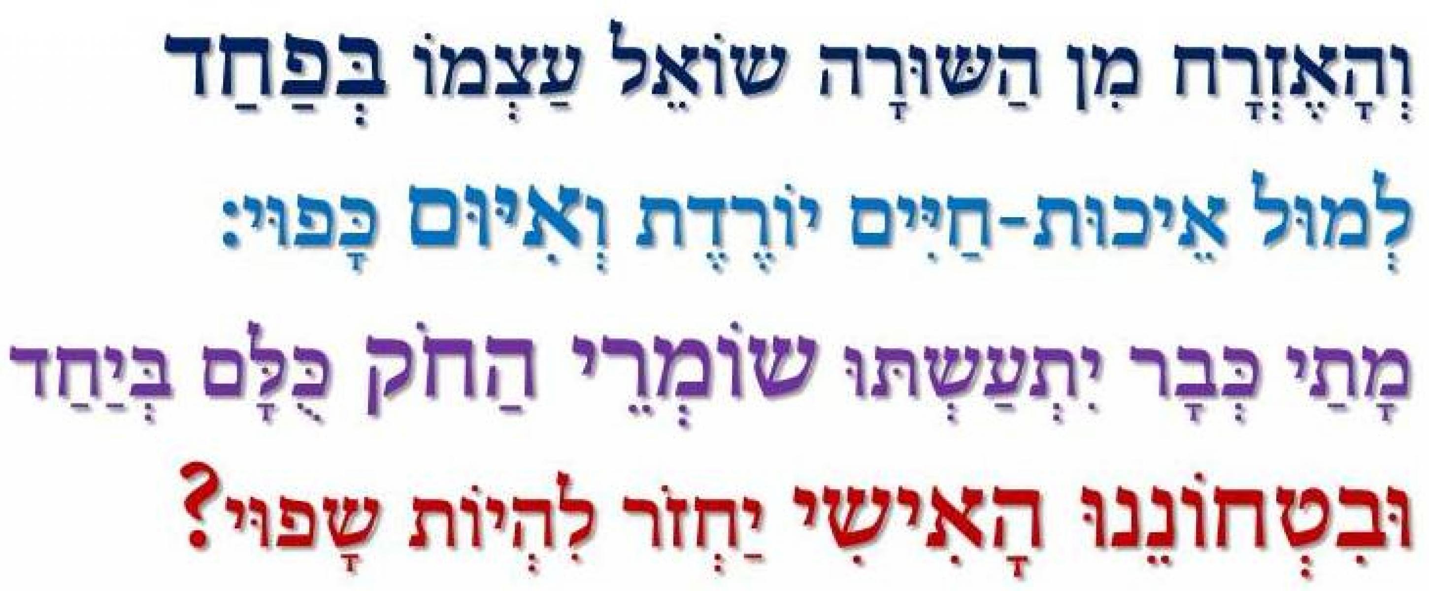 "מָתַי נֶחְדַּל לִהְיוֹת כִּסְדוֹם וַעֲמוֹרָה בְּאֶרֶץ שֶהַדִּבֵּר הַקְּלָאסִי "לֹא תִרְצַח" בָּהּ יִשָּמֵר וְהַמִּמְסָד יָקוּם סוֹפְסוֹף וְיַעֲמֹד בַּפֶּרֶץ לְמִמּוּשוֹ שֶל מָה שֶהַדִּבֵּר הַזֶּה אוֹמֵר." (מתוך שירו של יוסי גמזו - ארץ אלימה)