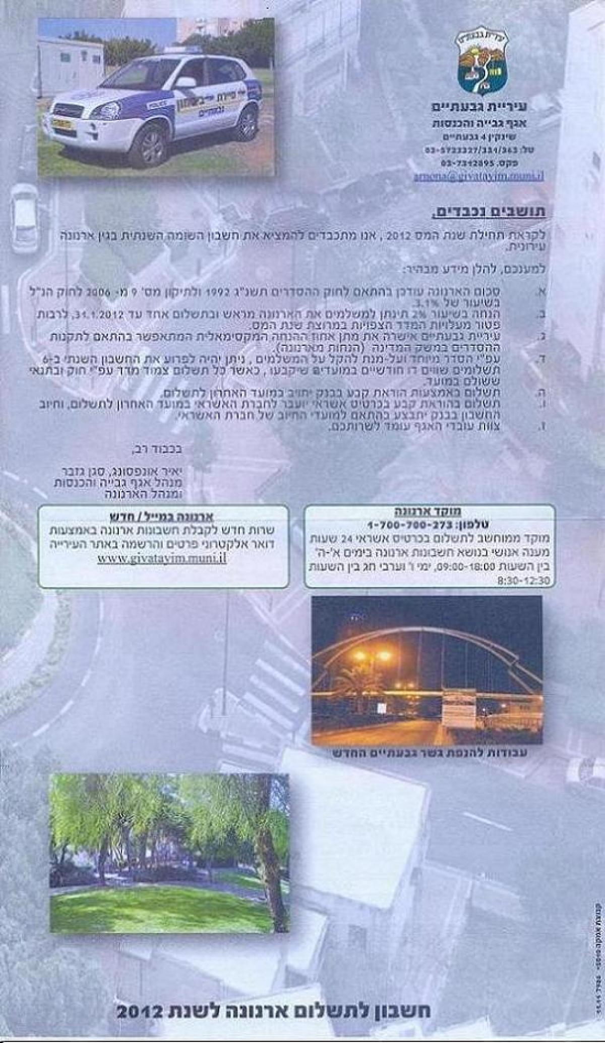 עצומה נגד העלאת מחירי הארנונה ב 2011 ובינואר 2012