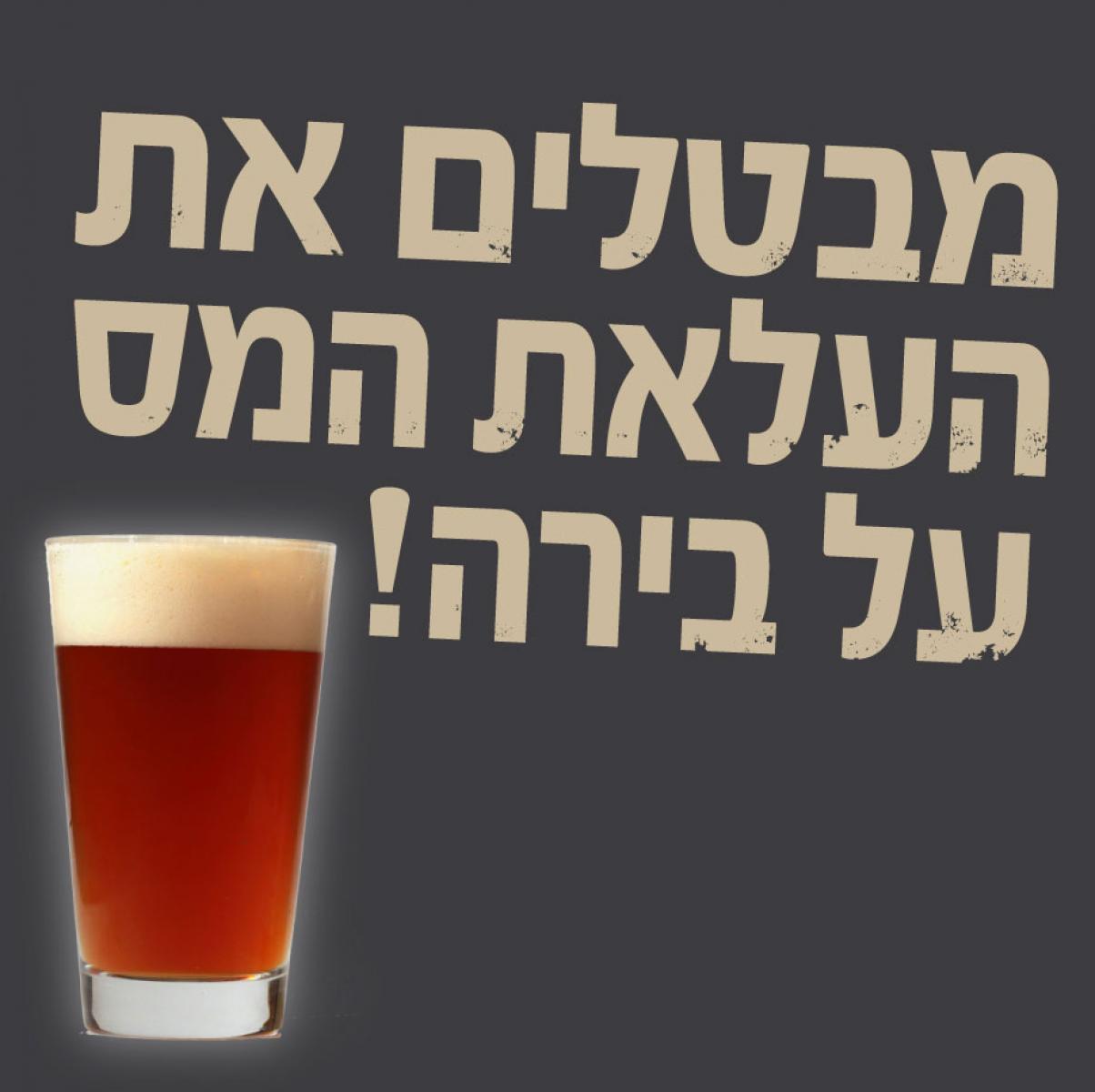 בירה היא משקה עממי, משקה של מעמד הפועלים. עזרו לנו לבטל את העלאת המס על בירה! מחירי הבירה התייקרו בעקבות העלאת מס שערורייתית של כמעט 100%!!! עוד גזירה חסרת רגישות מבית מדרשם של ביבי & שטיינץ. מחטף של פקידוני האוצר שטרם אושר בוועדת הכספים. את ההחלטה הזו צריך ואפשר לשנות! המאבק החל! אנו זקוקים לחתימות שלכם! איך תוכלו לעזור? 1. חיתמו על העצומה! (טופס החתימה נמצא מצד ימין למעלה) 2. שתפו את העצומה באמצעות פייסבוק, טוויטר ומייל (כפתורי השיתוף נמצאים למעלה) 3. לחצו כאן והצטרפו אלינו גם בעמוד הפייסבוק