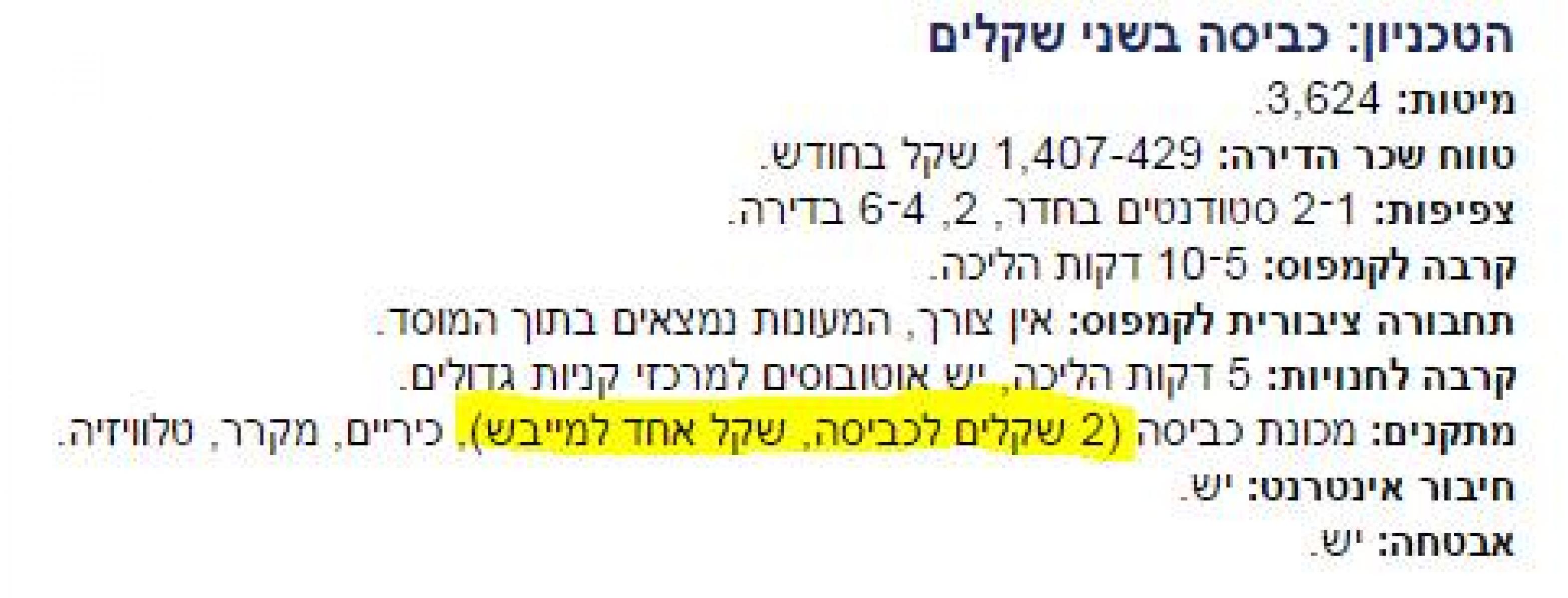 - הוזלת דמי השימוש במכונות הכביסה ובמייבשי הכביסה בהתאם למחירים באוניברסיטאות אחרות בארץ.