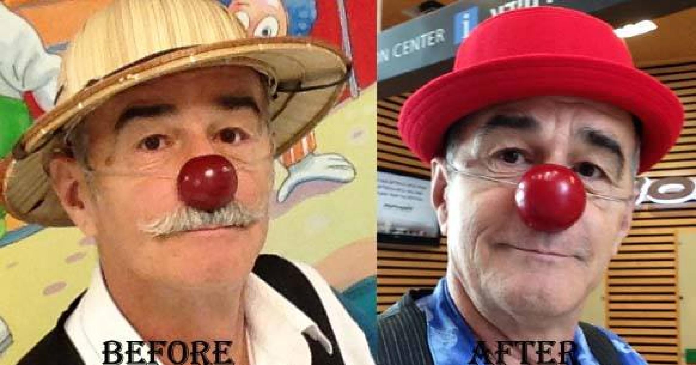 For years, Chris the clown had a trimmed mustache in the center of his face