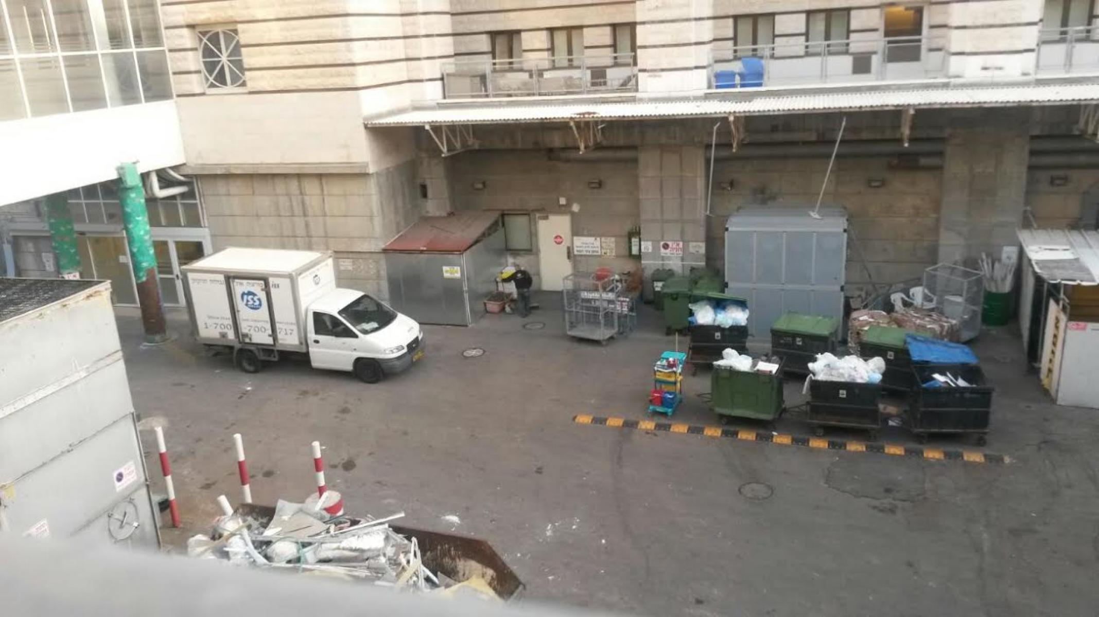 אדי כביסה ודרך שמיועדת לחציית משאיות לפירוק סחורה.