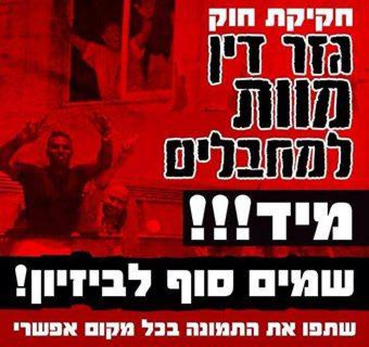 מודל לחיקוי? מי שרוצה לפאר את דרכם של המחבלים יעשה את זה גם אם חיים וגם אם הם מתים. אין הבדל בין יחיא עייש שחוסל בידי ישראל לבין אמנה מונא, שחטפה והובילה את הנער אופיר רחום למלכודת רצח, והיום היא חופשייה (קיבלה מאסר עולם). אם הפלסטינים רוצים לשבח רוצחי ילדים, זו הבעיה שלהם עם משפחת האומות. אנחנו צריכים לעשות צדק עם הפושעים הללו ועם עצמנו. העלאת חוק עונש מוות למחבליםכולנו עדים לזוועות הנוראיות שהמחבלים הטרוריסטים מנחיתים עלינו מפעם לפעם. אלפי הפיגועים, רבבות ההרוגים, אלו הם מספרים שכבר קשה לעקוב אחריהם. לאורך כל תקופת עצמאותה של ישראל, הטרור פוקד אותנו כל פעם מחדש. הסכמי שלום נחתמו, אך הופרו כל פעם מחדש, והשאלה הנשאלת היא: איך ניתן לעצור את הטרור?המחבלים שנעצרים גובים מאתנו מחיר כבד. מעבר לעלות שהייתם (מעל ל-100,000 ש\\"ח בשנה), חוטפים ארגוני הטרור חיילי צה\\"ל ואזרחים תמימים, על מנת לקדם עסקאות לשחרור המרצחים. ממשלת ישראל ממשיכה לשלם על שהייתם של המחבלים בכלא הבטחוני ולאחר מספר שנים המחבלים משוחררים, חוזרים לקהילתם כגיבורים ולרוב ממשיכים לעסוק בטרור ובחבלה.העסקה האחרונה, עסקת שליט, גבתה מאתנו את המחיר הכבד ביותר עד כה, 1027 מחבלים תמורת חייל שבוי אחד. הדרך היחידה לעצור את חטיפת החיילים ויחד עם זאת למגר את הטרור בצורה משמעותית, היא החלת עונש מוות על מחבלים שגרמו באופן ישיר או בעקיפין לרצח של אזרח ישראלי.עונש מוות למחבלים גם יפחית את עלות ההוצאות השנתיות של המדינה וגם ימנע טרור בעתיד!אנו החתומים על עצומה זו, דורשים מממשלת ישראל להוסיף סעיף לחוק העונשין בו מחבלים שגרמו מוות לאזרח או חייל ישראלי במישרין או בעקיפין, לא יוכנסו למאסר בבית הסוהר, אלא יקבלו עונש מוות בלבד. אנו דורשים את מלוא תמיכתם של השרים בהוספת סעיף זה.