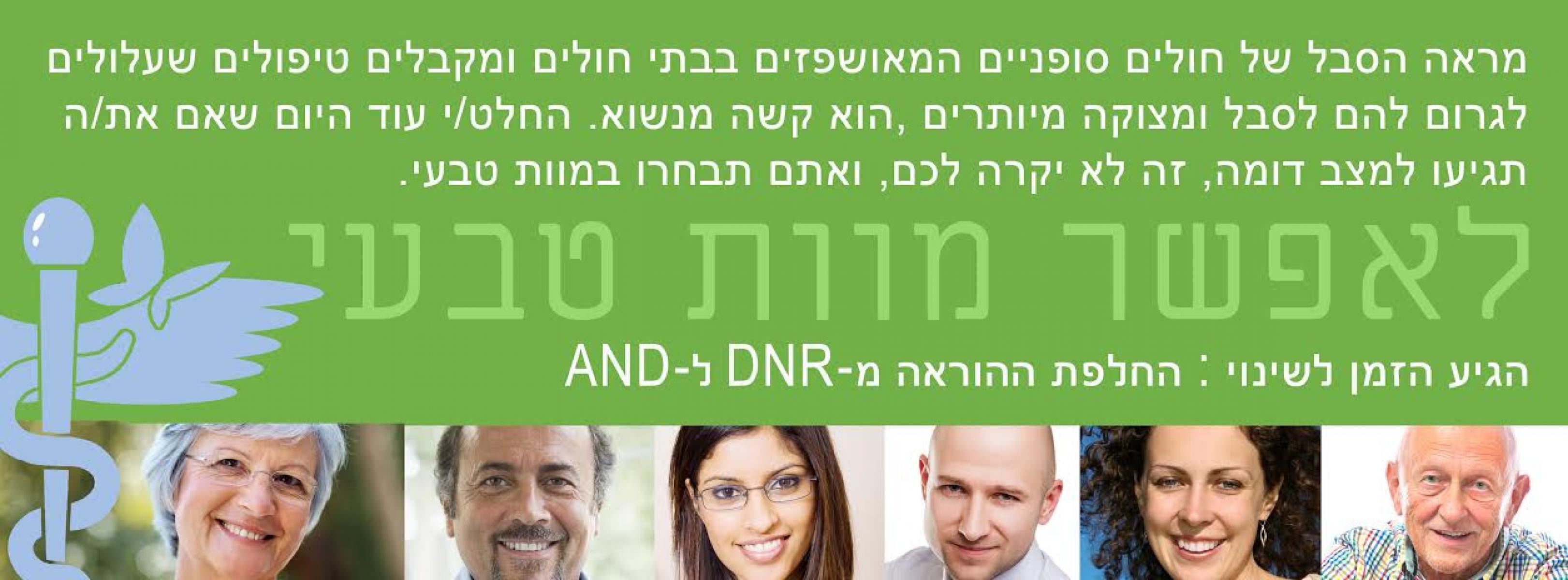 בעזרת התמיכה בעצומה זאת תוכל לסייע לנו להחליף את השימוש על ידי רופאים מ-DNR ל-AND . עיזרו לנו להעלות מודעות בציבור הרחב על ידי העלאת הנושא לסדר היום כך שבעתיד הקרוב שירותי הבריאות יאמצו את המונח AND.