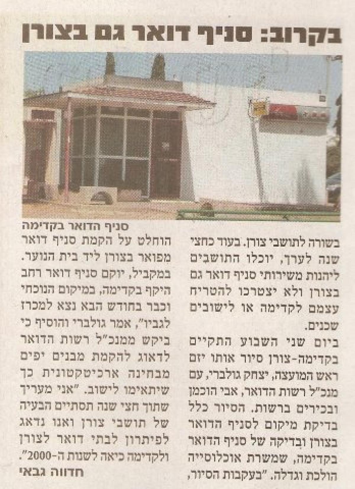 הקמת סניף דואר בצורן והגדלת סניף הדואר בקדימה