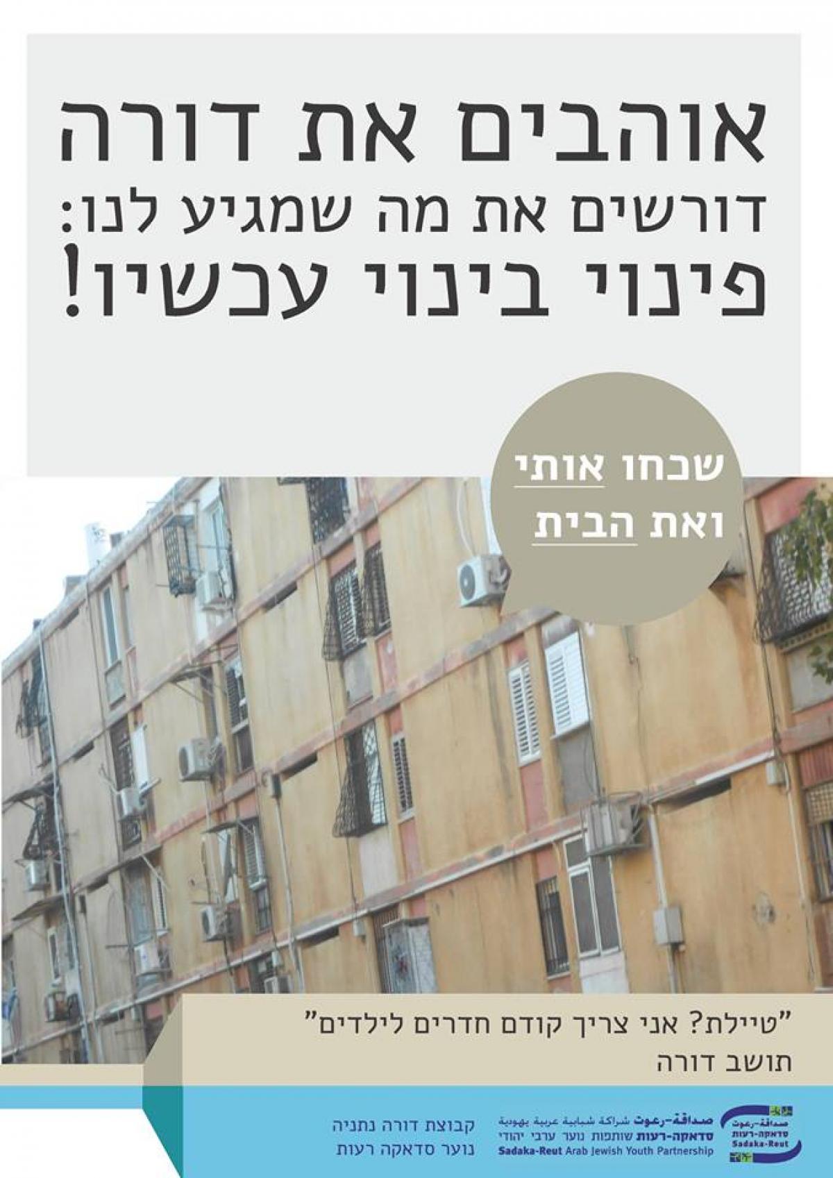 אנו, בני הנוער, תושבי שכונת דורה, קוראים לעירייה, למשרדי הממשלה ולכל הגופים הנוגעים בדבר לפעול במרץ ולממש את ההבטחותיהם- ולפיהן יופעל בשכונה פרויקט פינוי בינוי בשיכונים הישנים והרעועים.
