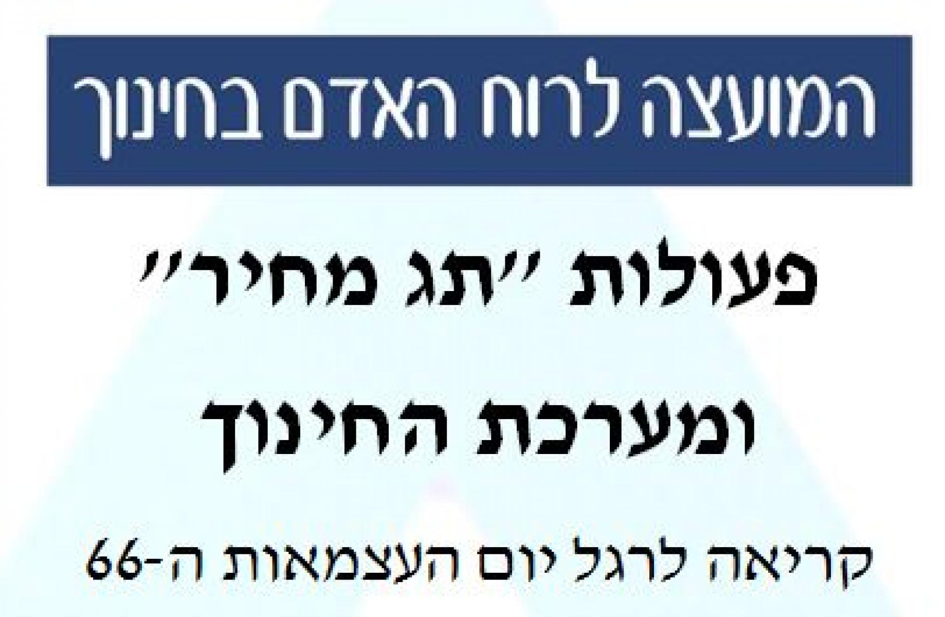 פעולות "תג מחיר" ומערכת החינוך - קריאה לרגל יום העצמאות ה-66 של מדינת ישראל