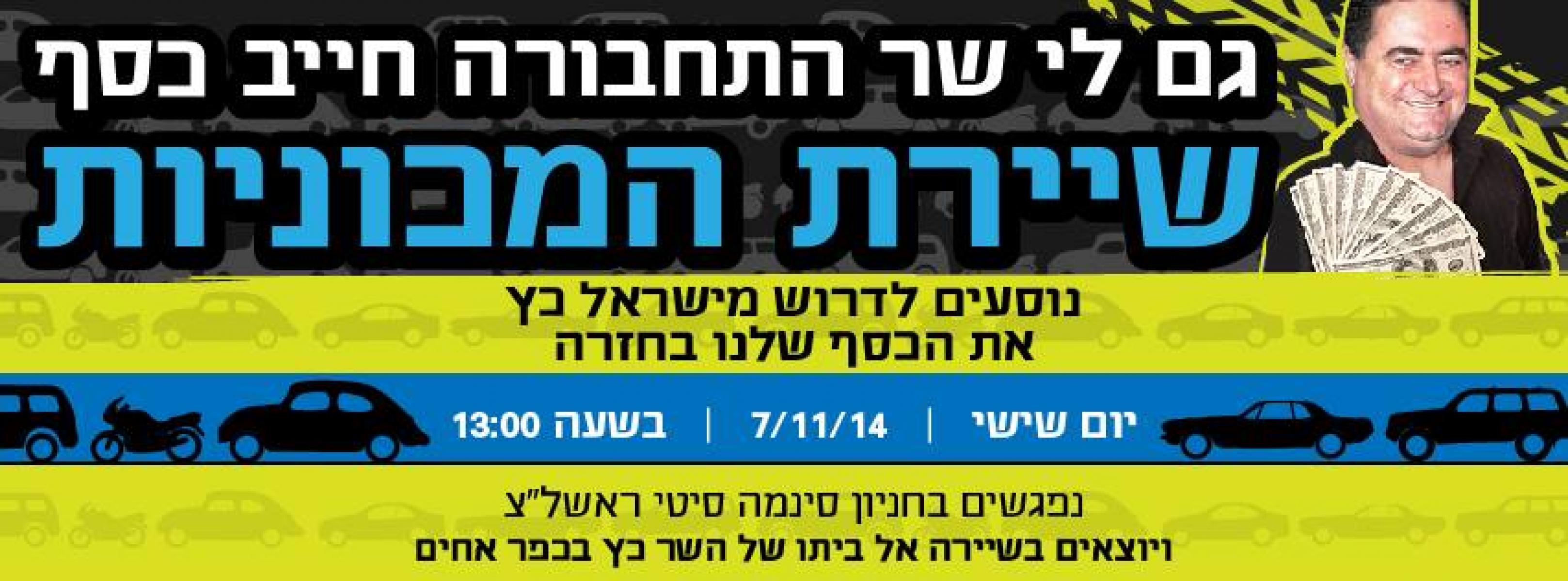 מחאת הרכבים - שר התחבורה חייב לי כסף