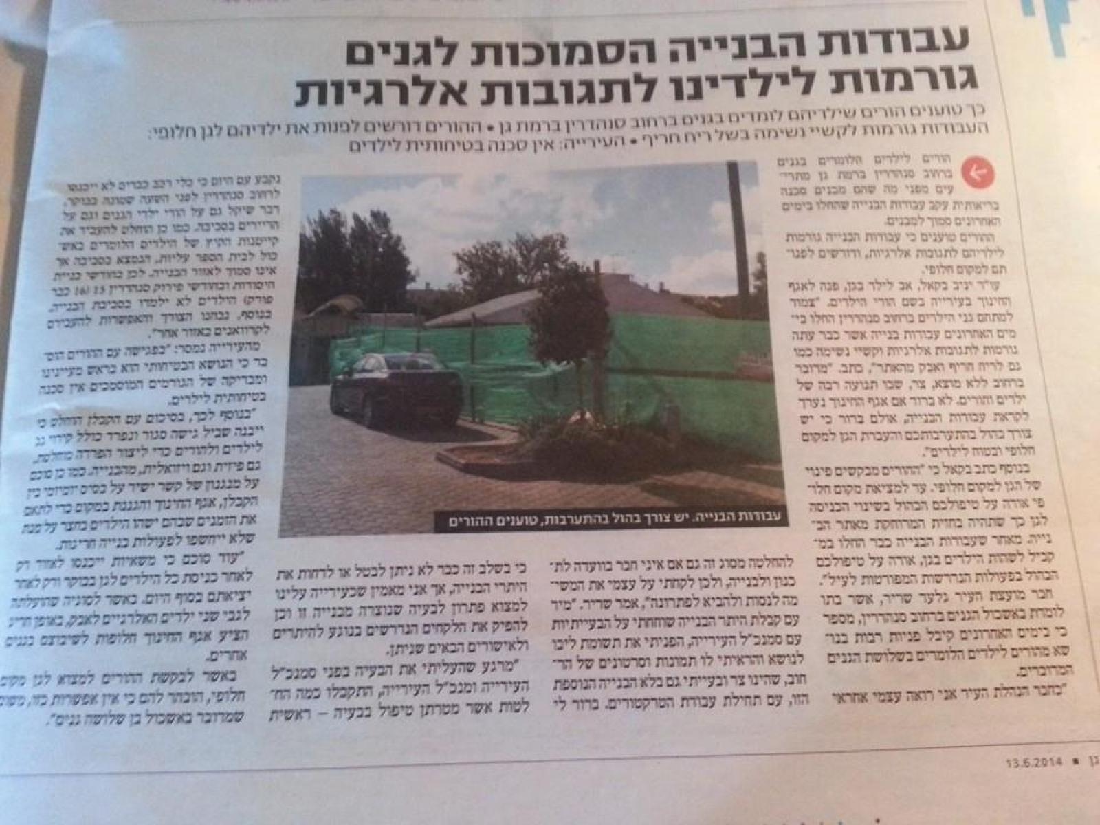 פרטים נוספים בעניין ניתן למצוא בעמוד הפייסבוק "מאבק גני סנהדרין"