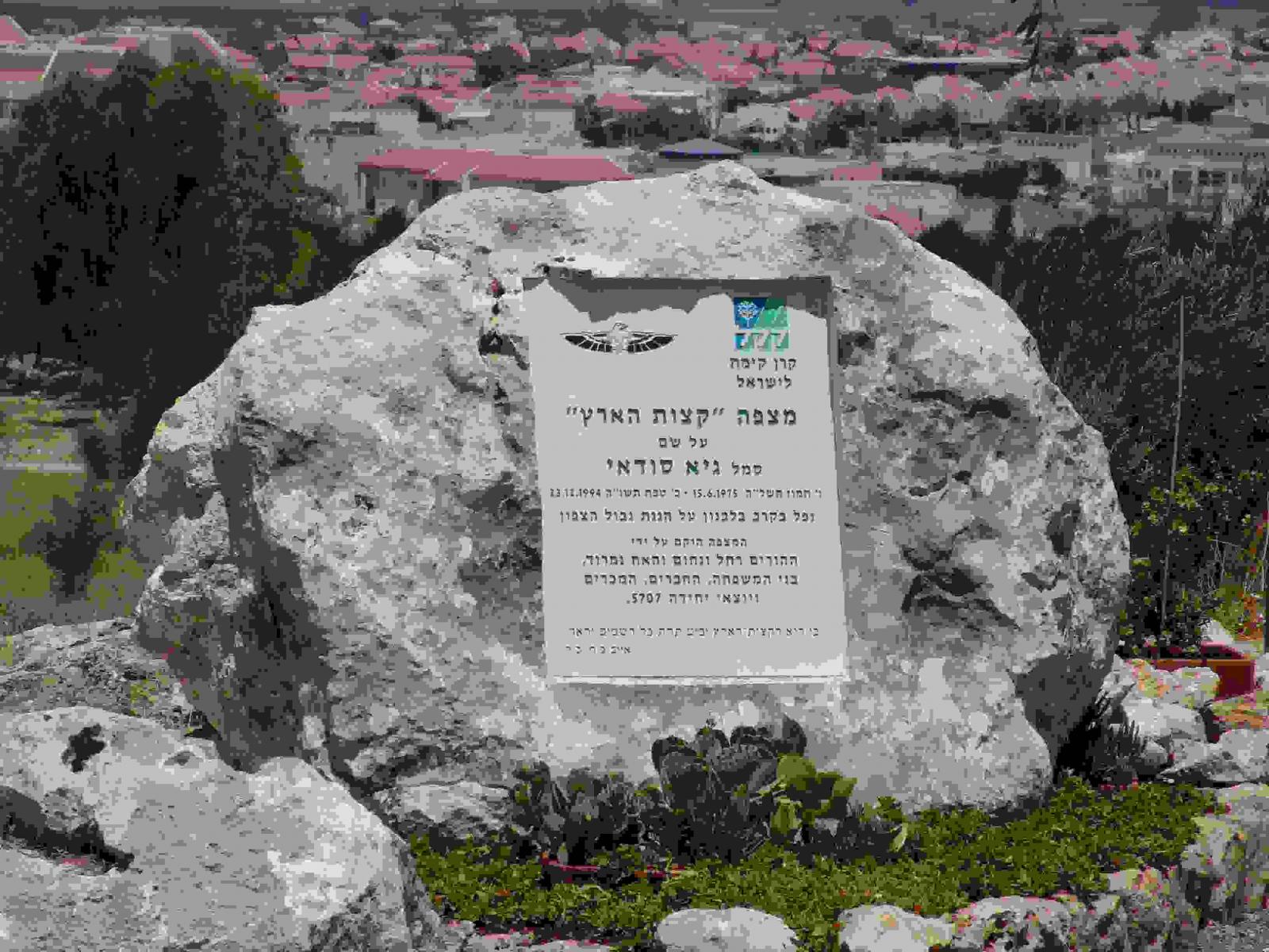 בדצמבר 1994 נפל גיא סודאי בלבנון בהגינו על מדינת ישראל ואזרחיה. לזכרו הוקם בפארק שוהם מצפה הנקרא "מצפה קצוות הארץ". המצפה הוקם ע"י ההורים רחל ונחום סודאי, האח נמרוד, המשפחה, היחידה בה שירת ובעזרת קק"ל בהשקעה כספית רבה ומתוחזק כיום ע"י המשפחה באהבה רבה ובעמל רב.