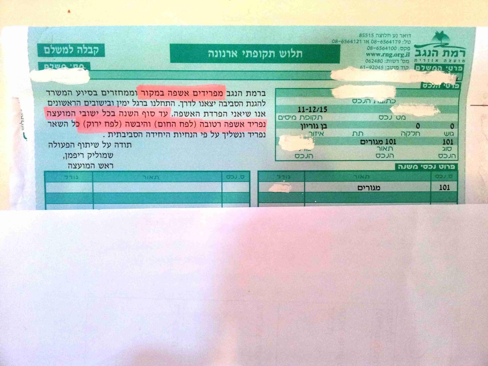 לא להפסקת הפרדה במקור- מועצה אזורית רמת-נגב