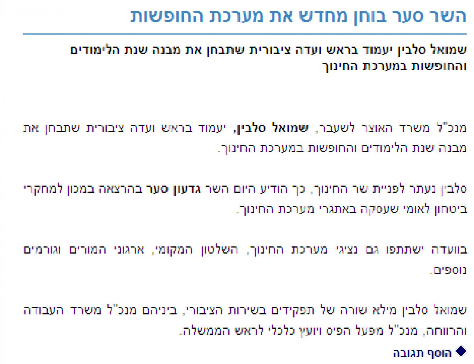 השר סער בוחן מחדש את מערכת החופשות מי שנגד שיחתום!