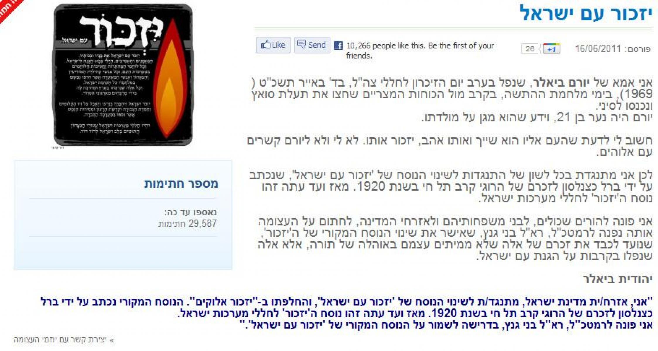 עצומה נגד עצומת ה"יזכור"