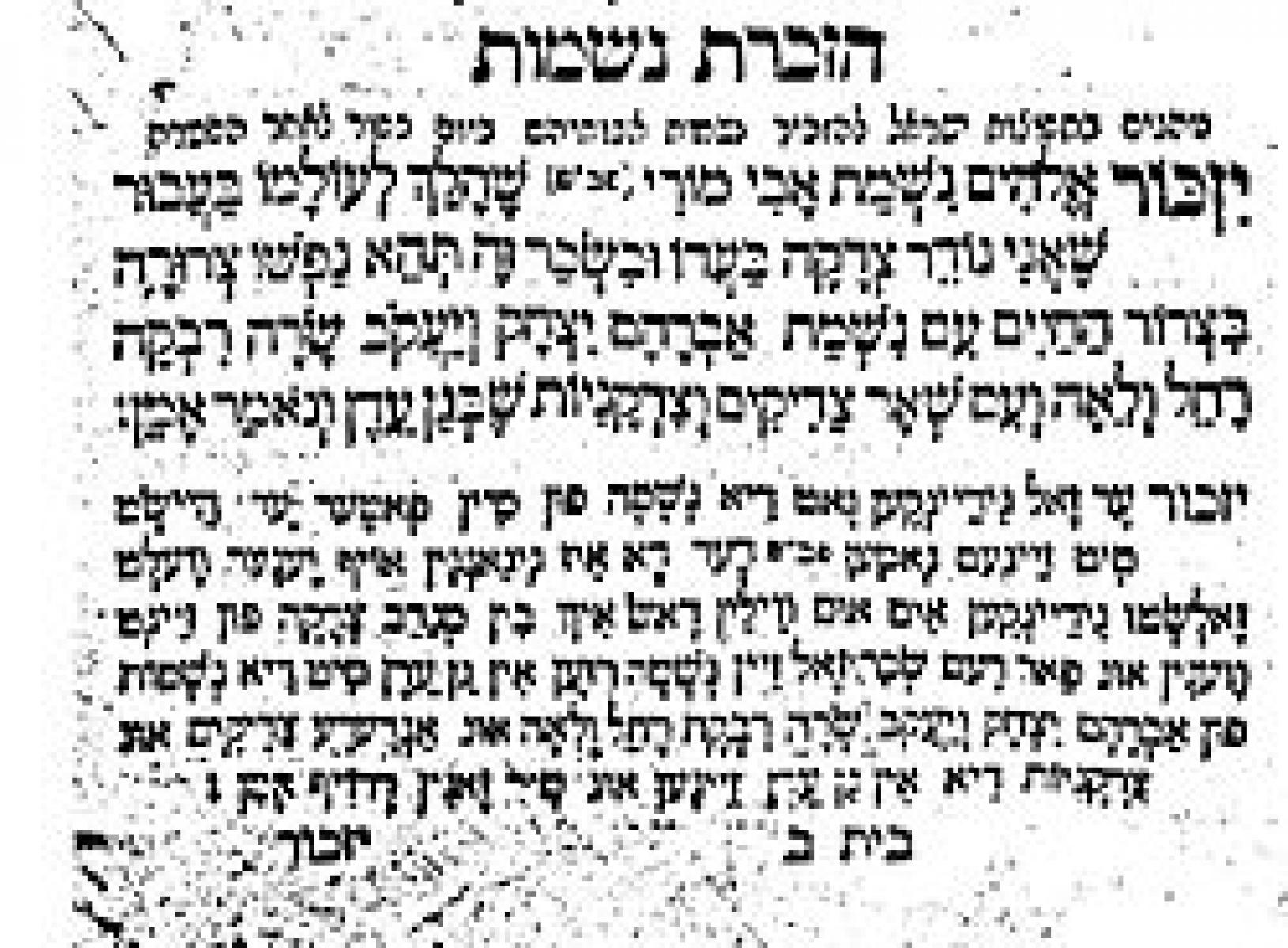 תפילת היזכור תפילת היזכור שנאמרת ביום הזיכרון היא חיבור שנכתב ע"י ברל קצנלסון תפילת היזכור המקורית נכתבה בסביבות המאה ה-9 ונאמרת בחגים בנוסח : יִזְכּוֹר אֱלֹהִים נִשְׁמַת אָבִי מוֹרִי (פלוני בן פלוני)שֶׁהָלַךְ לְעוֹלָמוֹ בַּעֲבוּר שֶׁאֲנִי נוֹדֵר צְדָקָה בַּעֲדוֹ.וּבִשְׂכַר זֶה תְּהֵא נַפְשׁוֹ צְרוּרָה בִּצְרוֹר הַחַיִּיםעִם נִשְׁמַת אַבְרָהָם יִצְחָק וְיַעֲקֹב שָׂרָה רִבְקָה רָחֵל וְלֵאָהוְעִם שְׁאָר צַדִּיקִים וְצַדְקָנִיּוֹת שֶׁבְּגַן עֵדֶן וְנֹאמַר אָמֵן.המיוחד בנו כעם ישראל הוא היותינו יהודים מאמינים מאז ומתמיד האמונה בא-ל אחד חיזקה ואיחדה את העם ונתנה לנו את הכוח לעמוד כנגד תהפוכות הזמן .. ורק מתוך הוקרה וכבוד לחללים הקדושים שנהרגו על מערכות ישראל אנו מבקשים אל תמיטו את שם אלוקים מתפילת היזכור !