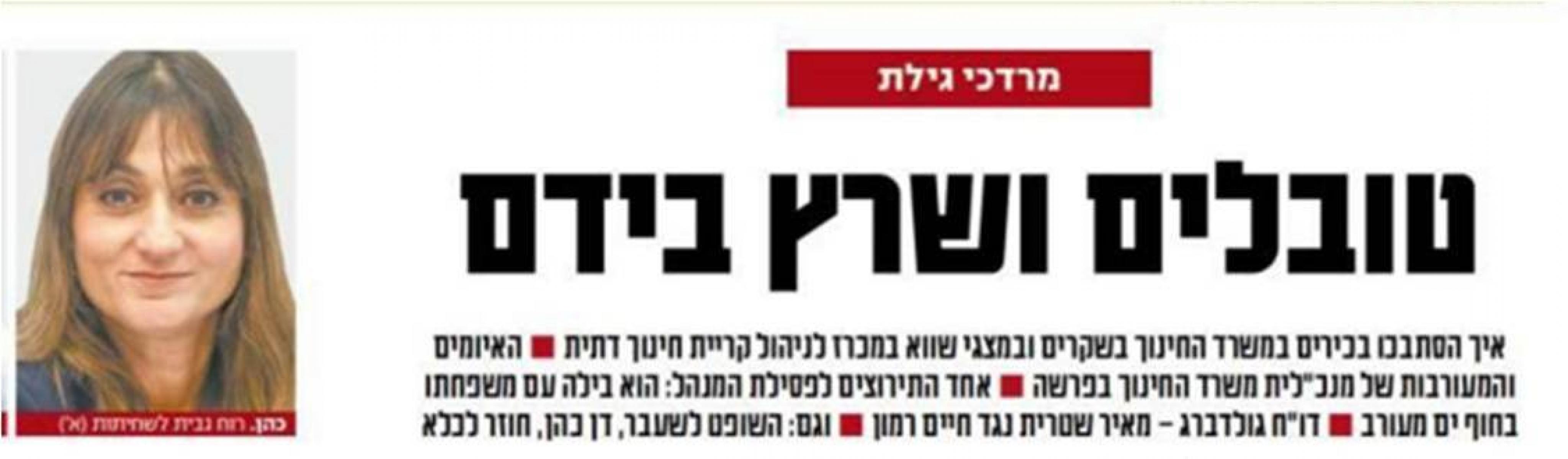 ממליץ לפטר לאלתר את מיכל כהן , מנכ"לית משרד החינוך שהורידה את המשרד ל"החינמוך" שאפשר ואף "קטלני"!