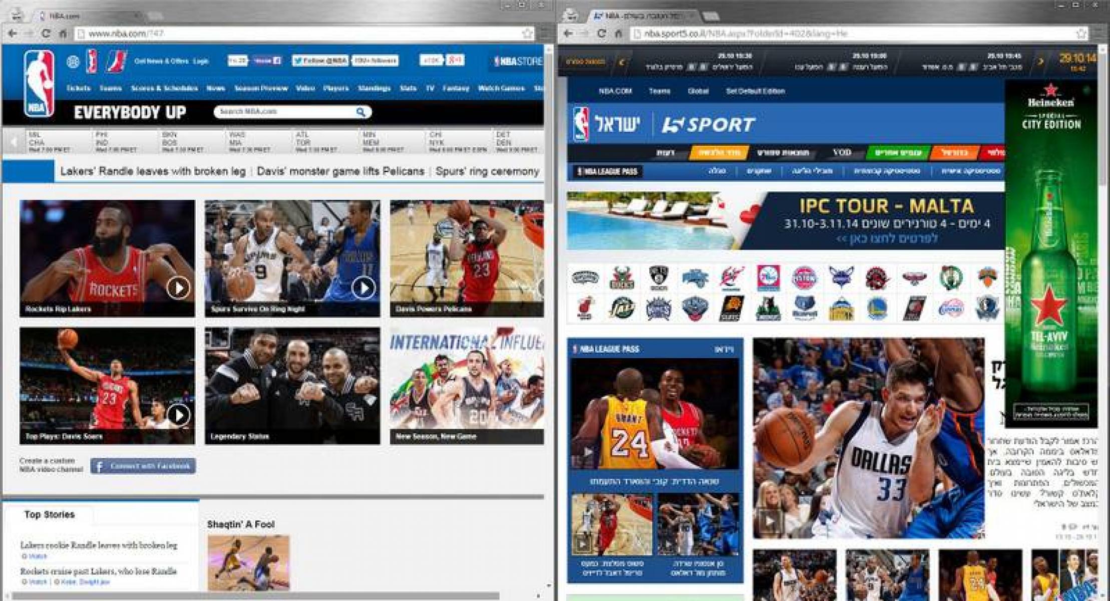 נסיון כניסה לאתר nba.com יפנה אתכם לערוץ הספורט במקום לאתר הרשמי והבין לאומי של ה NBA.