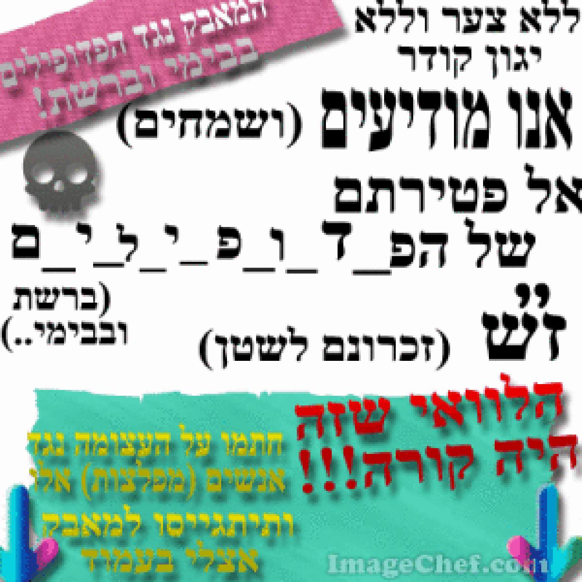 הסוף לפדופילים ברשת!!!תחתמו על עצומה זאת ואוליי זה יתן לנו להינצל ממקרים כאלו!!!קרו ה-מ-ו-ן מיקרים כאלו באתרים שונים אבל שנבנו דווקא למטרה טובה כמו לדוגמה:פייסבוק,איי סי קיו ועוד...אלו ששואלים למה זה יעזור???עם הרבה אנשים יחתמו ויוכלו לשכנע עוד אנשים לחתום על העצומה ואוליי זה יעזור להם להינצל ונזכיר להם כמה פרטים בסיסיים (במיוחד לילדים) :אסור לתת פרטים אישיים לאנשים שלא מכירים!!! (לאלו שבאתרי הכרויות כדי לכן מאד להיזהר!)תעזרו לאנשים (שאתם מקירים) במצוקה ותמליצו להם מה לעשות!!!לילדים:מי שמבקש פרט אישי או שמטריד אתכם ולא נותן לכם להרגיש בנוח הוא רק מנסה לפגוע בכם!!! תפנו מיד להורים!!ס-ו-ף ל-פ-ד-ו-פ-י-ל-י-ם ב-ר-ש-ת!!!!!!!!!
