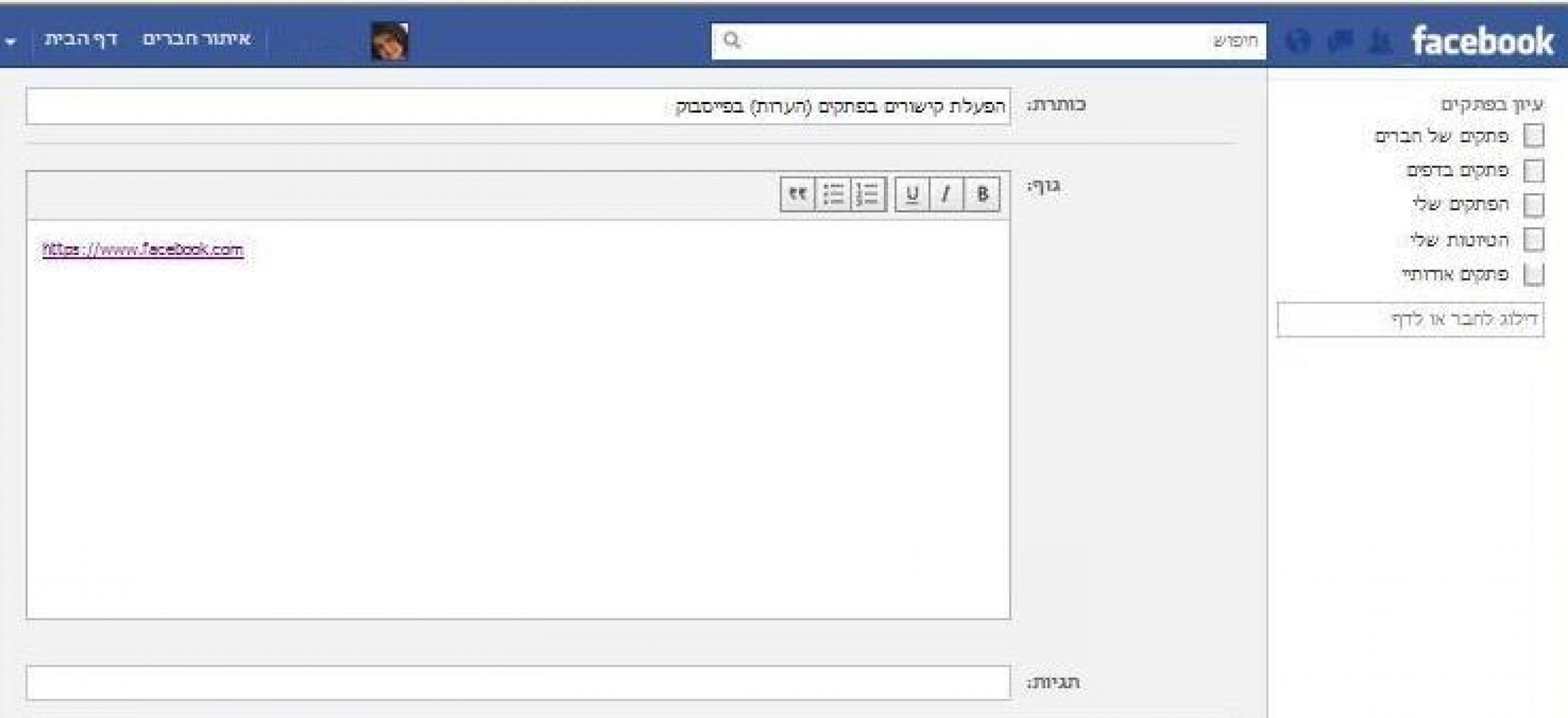הפעלת קישורים בפתקים (הערות) בפייסבוק