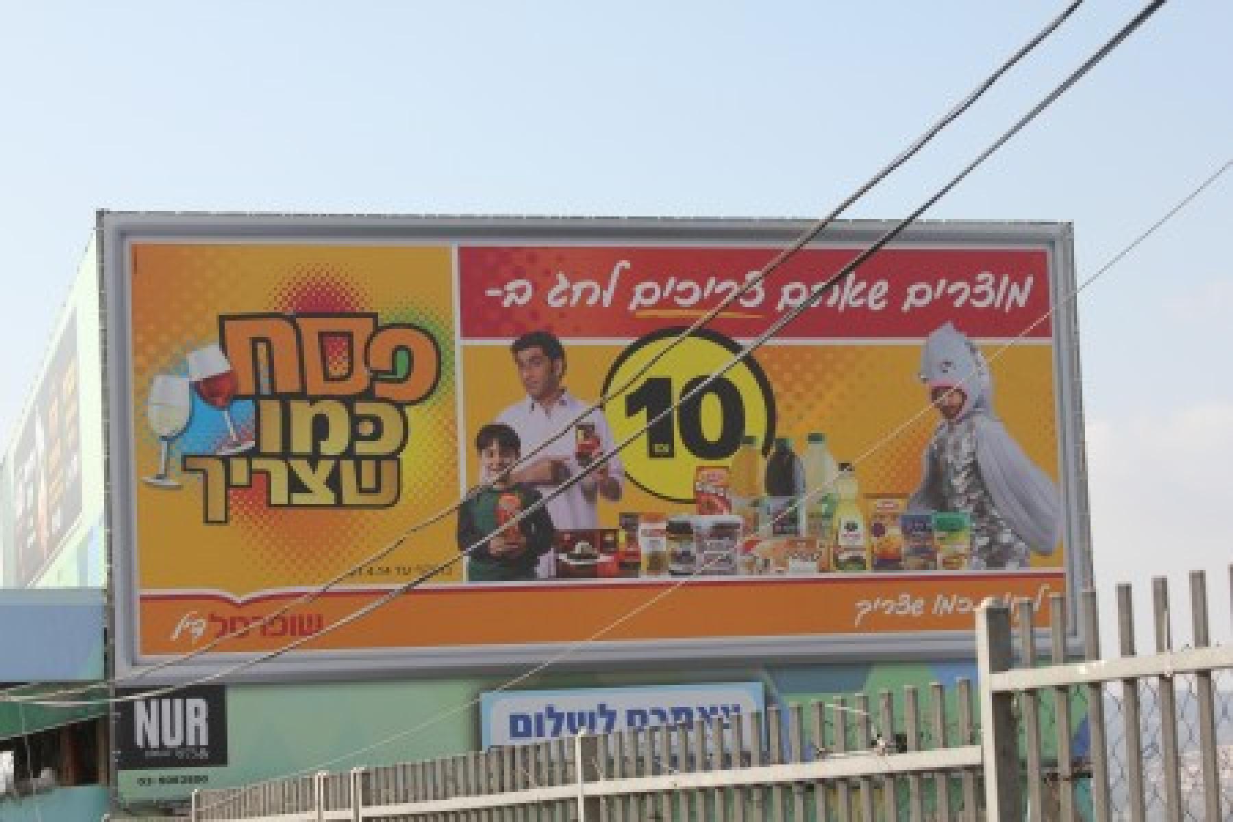 בימים האחרונים מפרסמת שופרסל בשלטי החוצות שלה משפחה הקונה את מוצריה בשמחה.