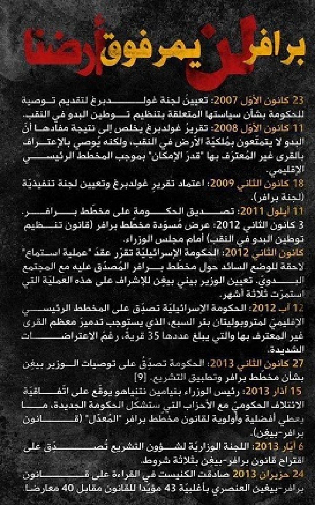 ארבע סיבות לדחות את "תכנית פראוור"כיצד להבטיח התנגדות להצעת חוק חדשה? התעלם מהאוכלוסייה, היה עמום וסודי, והצע תנאים מעליבים. כך נראה תזכיר החוק "להסדרת התיישבות בדואים בנגב" שפורסם לפני כשבוע על-ידי הממשלה. החוק המוצע ו"תכנית פראוור" אותה אשרה הממשלה בספטמבר, משרטטים מתווה בעייתי, אשר מזכיר את תכנית העיירות הישנה, בכך שהוא מבקש לרכז את הבדווים ביישובים מצופפים, תוך הפקעת רוב קרקעותיהם. במקום להוביל את הנגב לתהליך פיוס ותכנית פיתוח מוסכמת, תכנית פראוור מעמיקה אתהסכסוך בין הבדואים למדינה. הנה ארבע סיבות מדוע לדחות את החוק המוצע בצורה נחרצת.ראשית, בהיבט הקרקעי, המרכזי ביותר לפיתרון המוצע, המתווה מתעלם מהזכויות הקנייניות של רוב הבדווים, אשר היו בעלים של קרקעות נרחבות בנגב לפני 8491. בשונה מכל הצעות המדינה הקודמות, החוק החדש מדיר את כל הבדואים שאינם מחזיקים כיום בקרקעותיהם מכל אפשרות לזכות בקרקע. מדובר בלמעלה ממחצית תובעי הקרקע אשר גורשו מאדמותיהם במערב והר הנגב בשנות החמישים, ובקבוצות מסוימות באזור עראקיב ולקייה. במקום לתקן עוול היסטורי, מציע החוק להעניש אזרחים אלה פעמיים – בפעם הראשונה כאשר גורשו מאדמותיהם, ובפעם השנייה כשאין מכירים בתביעתם לקרקע. כמובן שאף קבוצה לא תקבל הסדר פוגעני שכזה.בנוסף, ההסדר המוצע לבדואים היושבים על קרקעותיהם אמנם מציע אחוזי תמורות מעט גבוהים יותר מאשר בעבר, אבל גם תנאי סף קשים יותר לרישום קרקעות, תוך ויתור על פיצויים. בהערכה מושכלתנראה שהמקסימום שהבדואים יוכלו לקבל מההסדר המוצע בחוק הוא 49-899,999 דונם, כלומר פחות מאחוז אחד מאדמות הנגב, או עשירית מתביעות הקרקע המקוריות שלהם. לכך יקרא בעברית – לעג לרש. שנית, בהיבט ההתיישבותי המצב חמור לא פחות. במקום להתייחס בכבוד הראוי לכפרי הבדואים שרובם קיימים עוד מלפני קום המדינה, הצעת החוק והחלטות הממשלה מכנה אותם בצורה מזלזלת כ-'פזורה'. זאת כאילו 94 הכפרים הבדואים הנמצאים בשטח עשרות ומאות שנים אינם קיימים. התוכנית נסוגה מהצהרות הממשלה בעבר, למשל בדו"ח גולדברג, שיש "להכיר בכפרים ככל שניתן", תוך ציון שמותיהם. הדוח הנוכחי מתנה את זכויות התכנון של הבדואים בהשלמת הסדר המקרקעין הבעייתי, ומשאיר את יתרת תחום התכנון כעמום וסודי. בכך מאבדת התכנית לחלוטין את אמונה של האוכלוסייה הבדואית, החושדת מהרס ופינוי. נזכיר למשל שהכפר עראקיב אשר פונה לראשונה בשנות החמישים, נהרס עוד שלושים פעם הריסתו השנייה ב-1989. קיים חשש סביר שהממשלה מכינה עתיד דומה לעשרות אלפי בדואים במסגרת תכנית פראוור. שלישית, המערך המינהלי המוצע ריכוזי ולא דמוקרטי. בניגוד לפרויקטי תכנון אזרחיים אחרים, 'המבצע' להסדרת השטח הבדואי ינוהל ישירות ממשרד ראש הממשלה, ועל מטה הביצוע יופקד אלוף במיל. דורון אלמוג, כאשר לידו פועלת רשות מיוחדת להסדרת ההתיישבות הבדואית, ובראשה הניצב בדימוסיהודה בכר. האם מדובר כאן במבצע צבאי או תכנון אזרחי? בנוסף, ועדת התביעות המרכזית אותה מציע החוק תורכב ממשפטן בכיר כיו"ר, מארבעה נציגי ממשלה, , ומנציג בדואי אחד ויחיד אשר ימונה על-ידי... ראש הממשלה. שום אוכלוסייה לא תוכל להסכים למערך ניהולי שכזה, בו אין לה ייצוג הולם, ועוד בנושא רגיש ונפיץ כמו הקרקע וההתיישבות.רביעית, תכנית פראוור נגועה באפליה אסורה. רק לפני כשנה הוכשרו עשרות חוות יהודיות שהוקמו באופן לא חוקי בנגב. באותו הזמן מבקשת המדינה, באותם אזורים, לפנות יישובים בדואים בני מאות ואף אלפי אנשים מאדמות אבותיהם. זאת ועוד, באוקטובר השנה אישרה הממשלה הקמת עשרה יישובים יהודיים חדשים באזור ערד, כאשר מאותו אזור היא מבקשת לפנות יישובים בדואים. לא ניתן להגדיר מדיניות זו בשום צורה מאשר אפלייה גזענית. האם ועדת פראוור והשר בני בגין לא מבחינים בכך? האם הם מאמינים שהאוכלוסייה תקבל תכנית הבנויה על אפלייה?