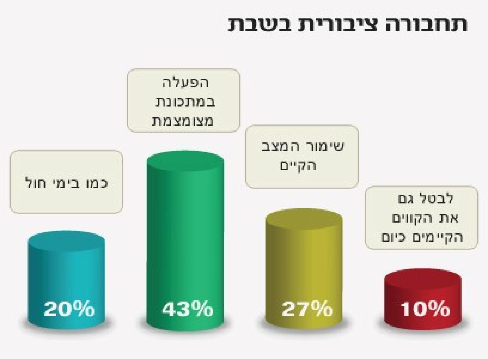 לדעתנו יש להתחשב ברוב הגדול בארץ (החילונים, שהם 43% מהיהודים במדינת ישראל, והמסורתיים הנוטים לצד החילוני, שהם 23% ממדינת ישראל) משום שאי אפשר להפלות 66% מאוכלוסיית היהודים בארץ בגלל שהתחבורה הציבורית היא משהו חיוני ודרוש בחיי היום יום של כל תושבי מדינת ישראל.