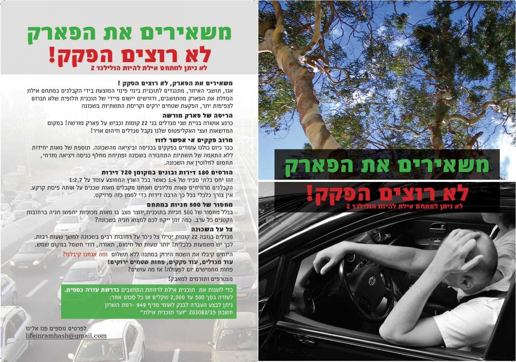אנו, תושבי האיזור, מתנגדים לתוכנית בינוי פינוי המוצעת בידי הקבלנים במתחם אילת