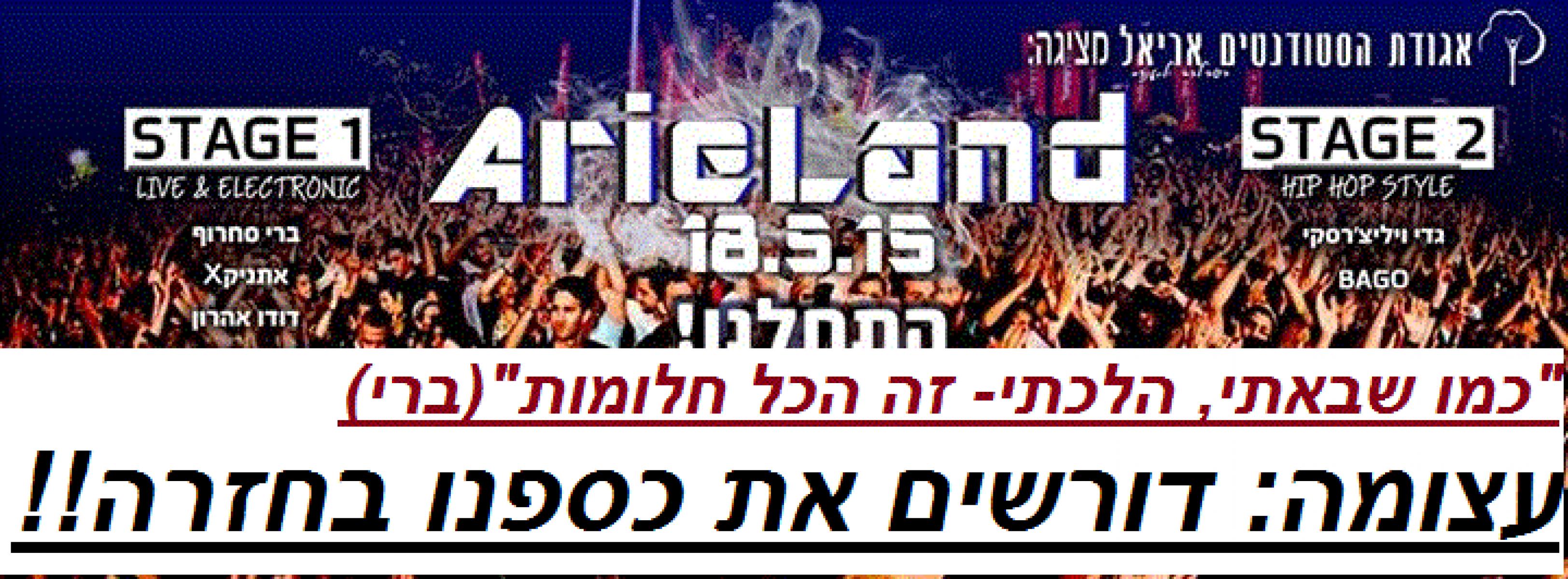 אנו, הסטודנטים באוניברסיטת אריאל, דורשים את כספנו מאגודת הסטודנטים, ששילמנו בעבור כרטיס ליום הסטודנט לשנת 2015.