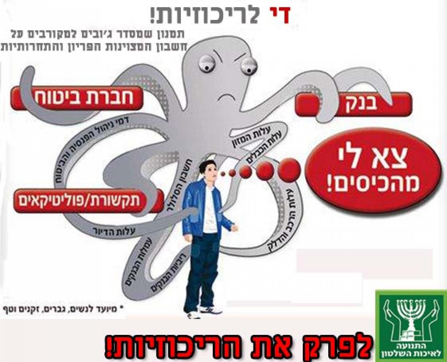 אנחנו אזרחי ישראל, באף מערכת בחירות וגם לא בבחירות האחרונות לא הצבענו עבור יצחק תשובה, שרי אריסון או עידן עופר - אך הם ממשיכים לשלוט כמעט בכל אספקט של חיינו, ללא מפריע - הפירמידות שלהם מתמוטטות, ההימורים שלהם על הפנסיות שלנו נמשכים - אבל הם ממשיכים לבקש תספורות לחובות ולחגוג על חשבוננו באין מפריע!.לאחר מאבק ממושך מול הטייקונים והלוביסטים שלהם, הצעת החוק לפירוק הריכוזיות כבר עברה בכנסת, אך המלאכה לא הושלמה - עתה צריך לדרוש את הצעד הנוסף והכנסת תחרות אמיתית לענק הבנקאות - הכח הכלכלי הענק במשק שמתנהל כקרטל לכל עניין ודבר.הטייקונים והבנקים הגדולים חייבים להבין כי הזמנים השתנו - אזרחי ישראל לא יאפשרו יותר לאפשר המשך של העושק הציני של כספי החסכונות והפנסיה שלנו.