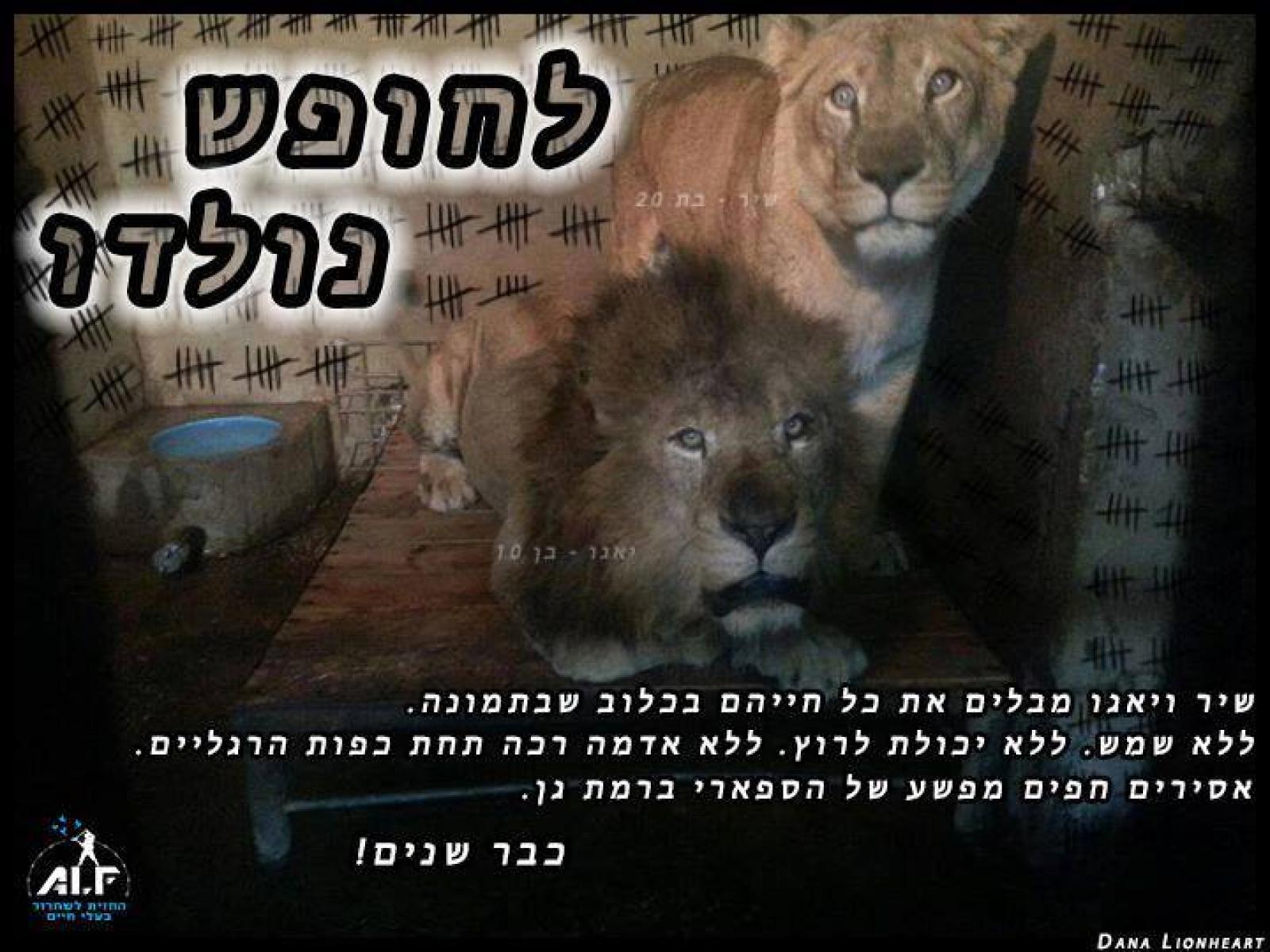 סיפורה של שיר, אחת מיני רבים הכלואים בגני החיות בישראל:שיר לביאה בת 20.חיה בתוך קוביית הבטון הזו כבר 4 שנים. היא לא יוצאת לחצר עם שאר הלהקה כי היא מפחדת מחלק מהאריות. אין כבר אפשרות לחבר ביניהם. אלו לא גורים, אלו אריות בוגרים והיא כבר זרה מבחינתם. נעשו ניסיונות למכור אותה לגן חיות בוויטנאם לפני כשלוש שנים. אבל אף גן חיות לא רוצה סחורה פגת תוקף. המכירה נפלה. שיר רואה שמש לעתים נדירות מאד. לאחרונה, הצטרף אליה יאגו. אריה בן כ-10 או 11 שהיה זכר האלפא והודח. בטבע, הוא היה מגורש על ידי האריות הצעירים שהשתלטו על הלהקה. אבל בספארי, אין לו לאן לברוח. נשאר במבנה, רואה שמש לעתים נדירות.גן חיות הוא כלא בו האסירים חפים מפשע! אל תקחו בזה חלק.במשך זמן רב חיות בארץ סבלו טבח, התעללות, שימוש לאינטרסים אישיים כגון בגדי עור, בגדי פרווה, חלקי גוף כגון רגל ארנב שפן למזל טוב, שנהב של פיל לגשר בגיטרה וכ'וכל יום נהרגים אלפי חיות ובכל יום שחולף יותר חיות סובלות עקב רביה מואצת כפויה.גן חיות או לא, זה לא גן לחיות! זה כלובים שמכילים נשמות חופשיות עצמאיות שנולדו לטבע, סורגי ברזל שכולאים את נשמתן של נשמות בדיוק כמו שלנו! אין סיבה שישארו בתוך השטח הסגור הזה ואין סיבה שנעלים עין מגן החיות של רמת גן או כל גן חיות אחר! בגלל עסקים כאלה העולם קורס!