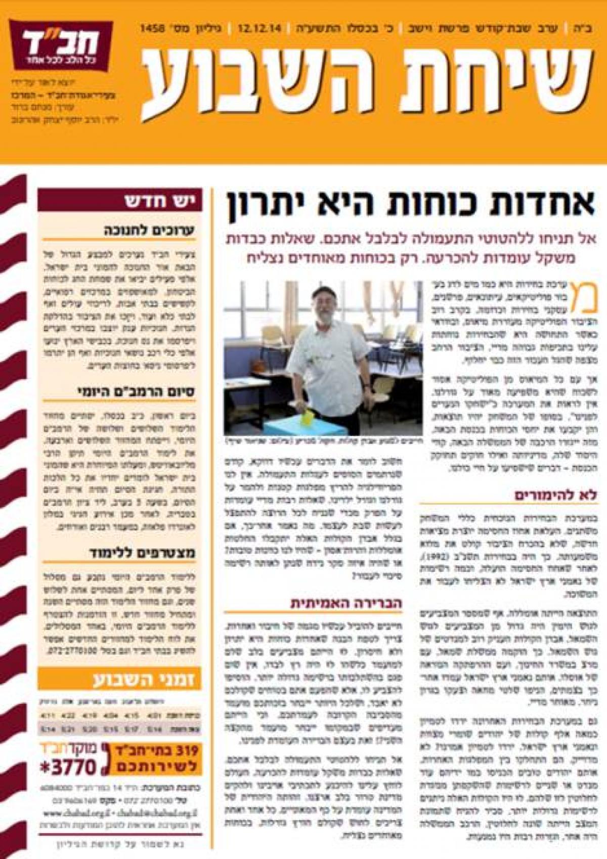 אנו, חסידי חב"ד, מוחים בתוקף כנגד חילול ה' מפרסום דברים שהם היפך גמור מדעתו רצונו ומעשיו של הרבי, ודורשים מעורכי העלון לחזור בהם בפומבי מדבריהם. ומצפים מהם לנהוג במשנה זהירות בפרסומים הנושאים את שם חב"ד עליהם. ויהי רצון שמכאן ולהבא, ישאו בגאון את דברי הרבי.