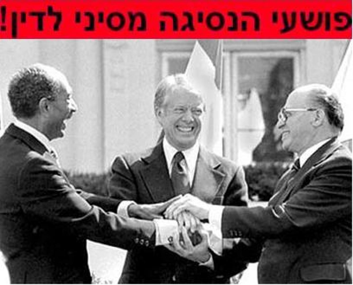 פושעי קמפ דיויד לדין! מנחם בגין ושותפיו היו אחראים להסכם "השלום" הכושל עם מצרים שבעקבותיו נאלצה ישראל לסגת מסיני. עכשיו, כשיורים עלינו טילים מסיני, כולם מבינים שצריך להעמיד את פושעי קמפ דיויד לדין.