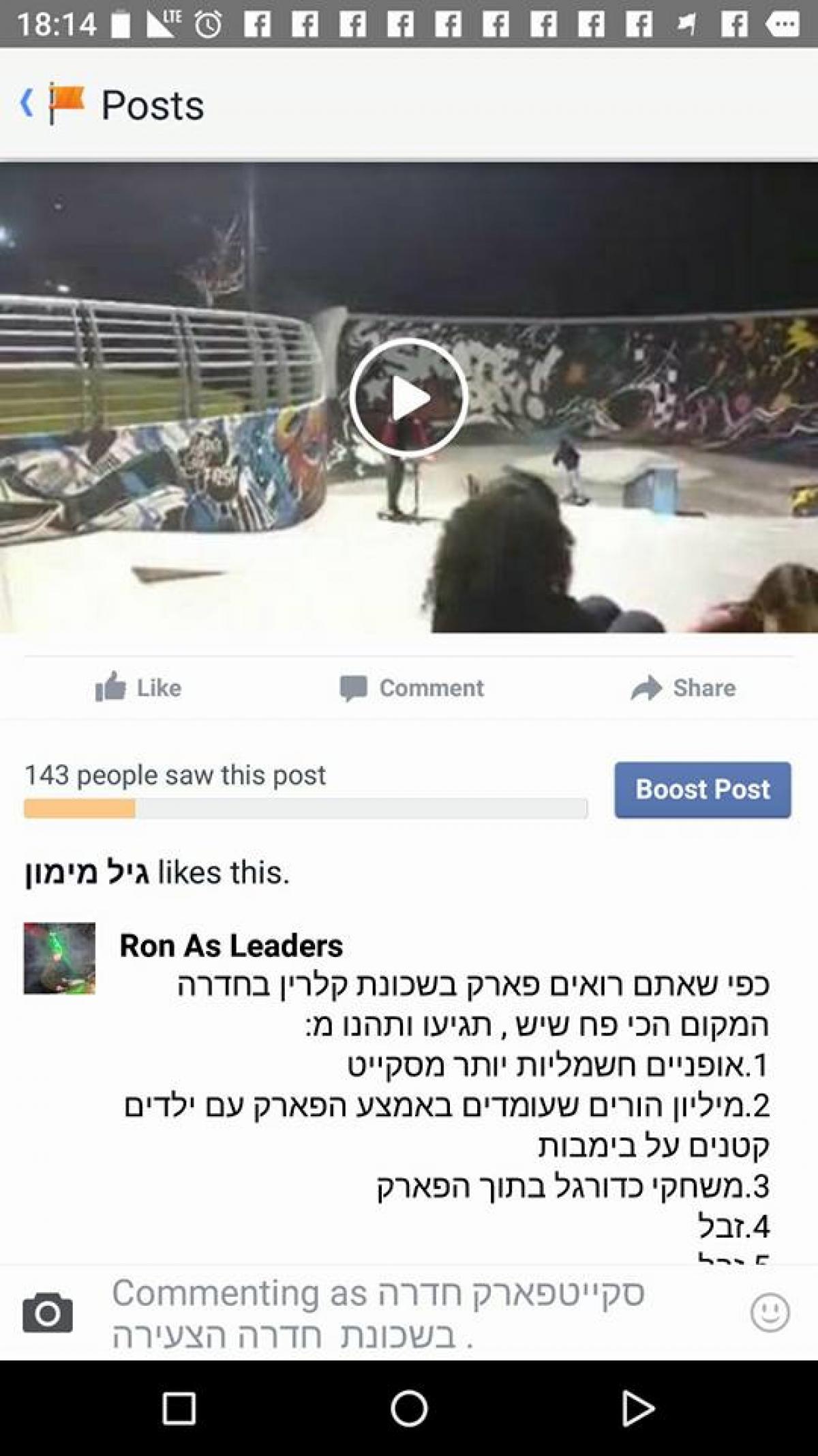 אנחנו קוראים לשי ברכה ולראש העיר לקיים את הבטחתם וליצור סביבה נעימה למשתמשים.