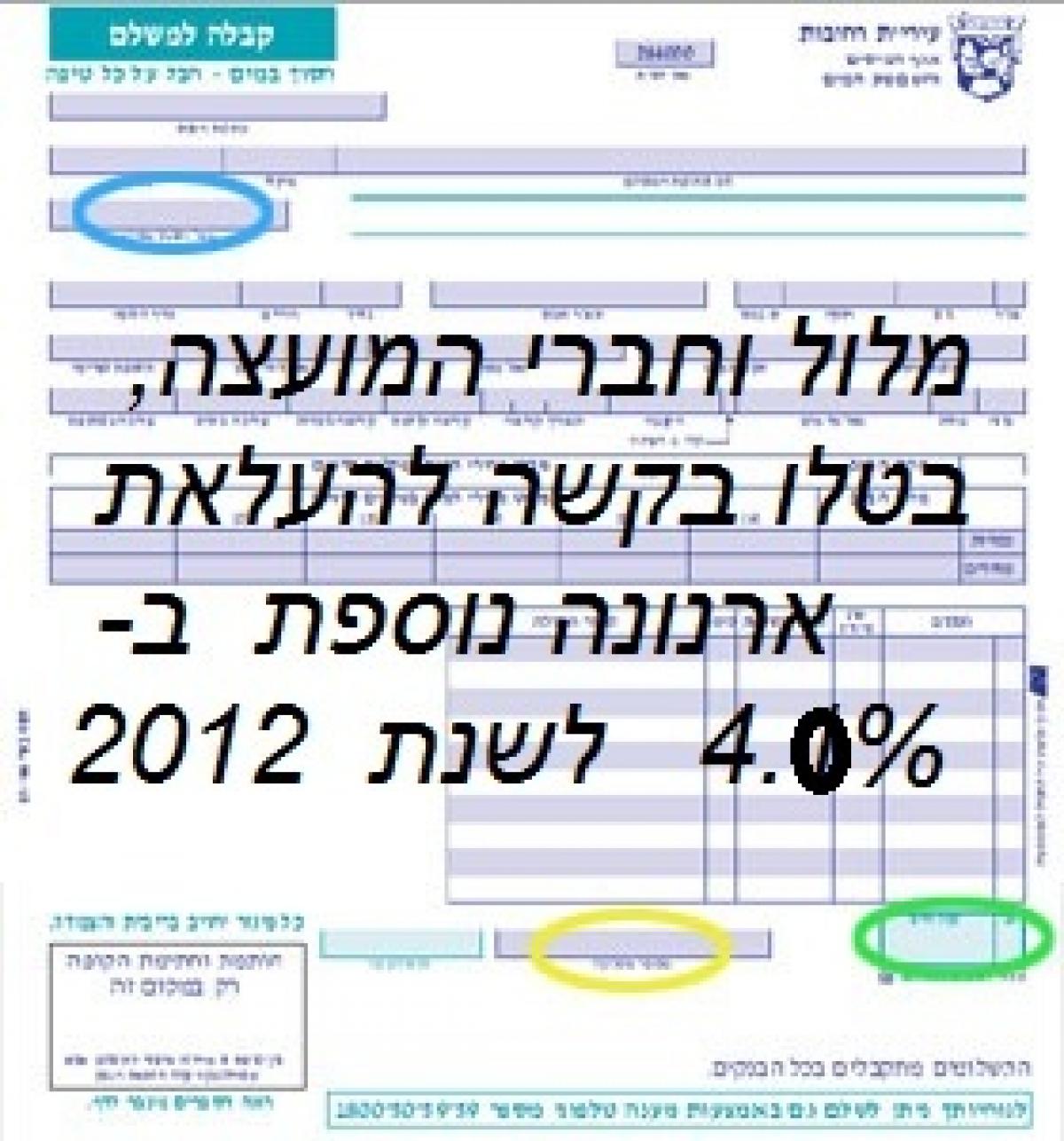 הנדון: בקשה "למשוך" את בקשת העלאת הארנונה ב- 4%– על פי החלטת מועצת העיר מ- 28.11.2011