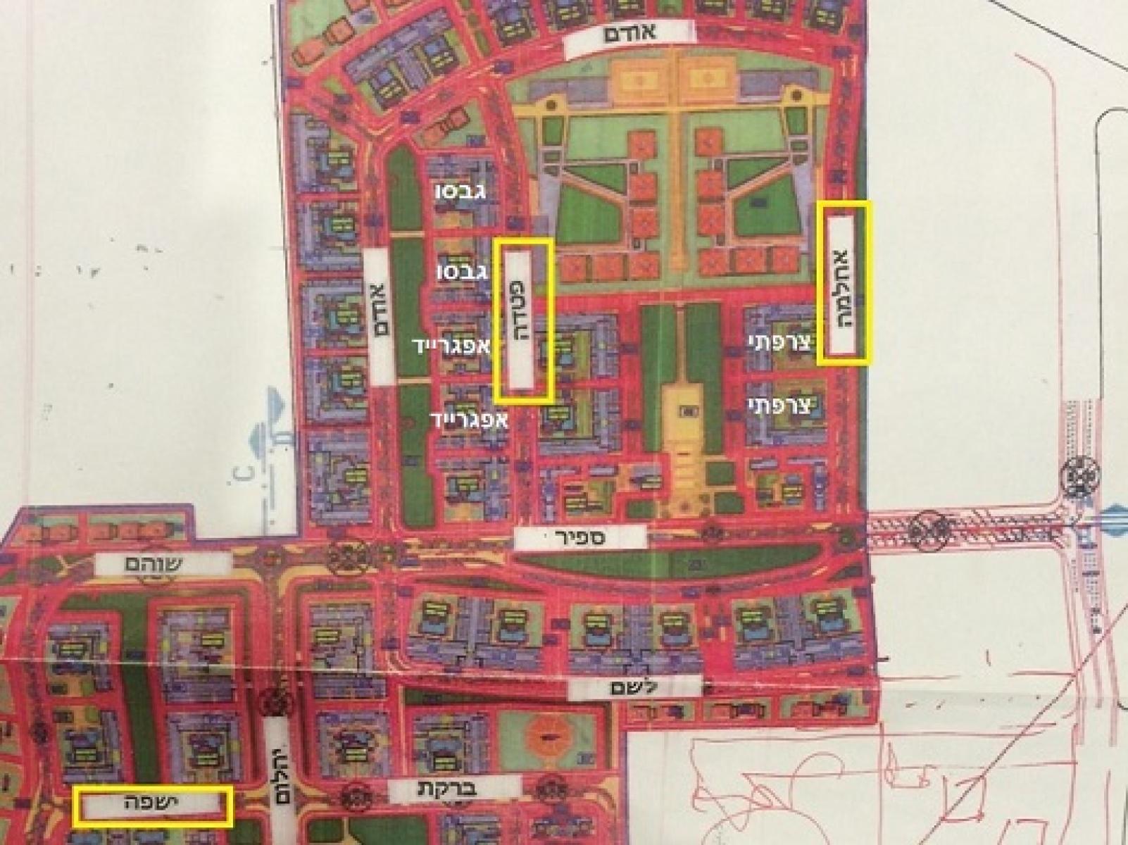 מצורפת תמונה של תשריט השכונה עם שמות הרחובות הרלוונטים שנשלחו לוועדה המקומית.
