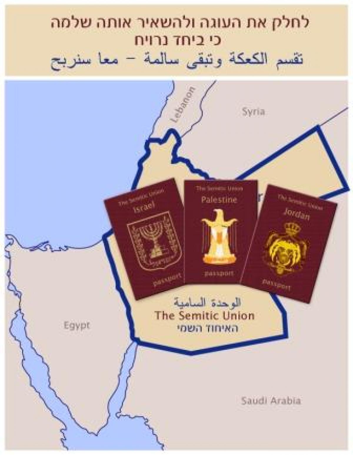 - אנו שואפים ליצור על השטח ההיסטורי של פלסטינה א"י (בגבולות 1922), איחוד בין 3 מדינות עצמאיות של העמים השמיים. עמים שהמשותף להם הוא מקור משותף ועתיד משותף תנאי חשוב לרצינות פתרון זה הוא שלב מקדים של הכרה בפלשתינים כשותפים שווים http://www.atzuma.co.il/recogpalstin.
